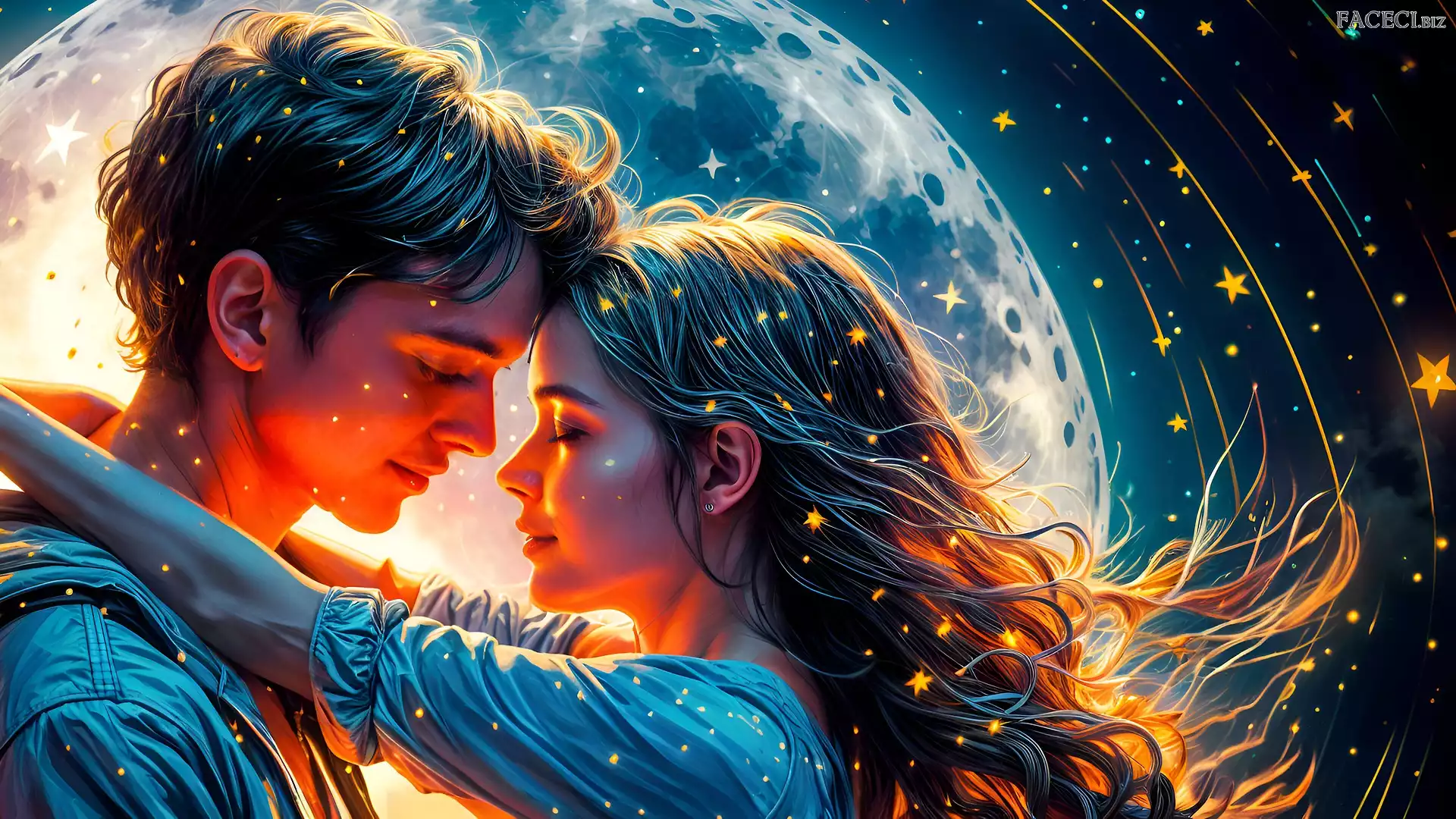Gwiazdy, Zakochani, Mężczyzna, Kobieta, Księżyc, Grafika - faceci.biz